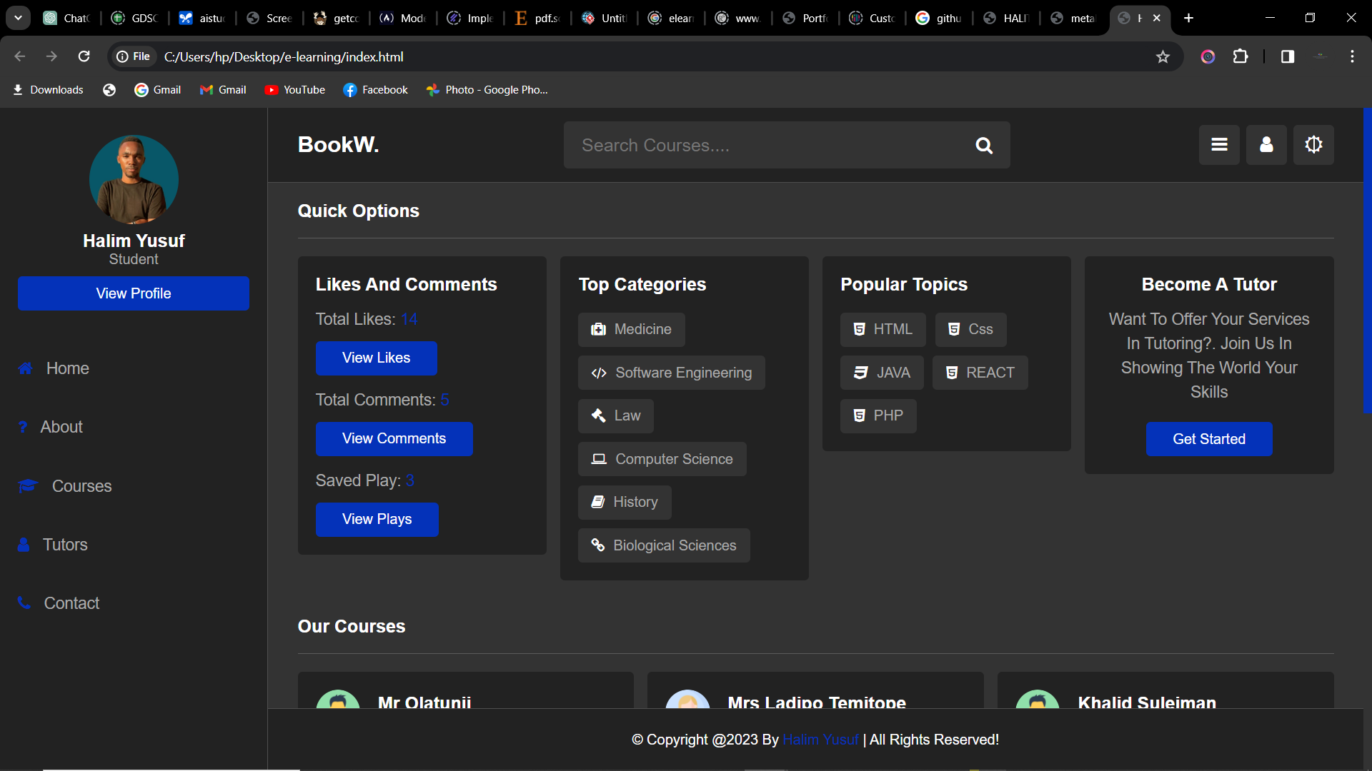 I am a skilled and creative web developer with expertise in designing and building dynamic and visually appealing websites. Proficient in a variety of programming languages such as HTML, CSS, JavaScript, and possibly others like Vue.js and PHP, i possess a deep understanding of front-end development and ablity to craft responsive and user-friendly interfaces, optimizing website performance, and ensuring cross-browser compatibility. As a web developer. My attention to detail, problem-solving skills, and commitment to staying updated on the latest industry trends contribute to my success in creating engaging and seamless online experiences.